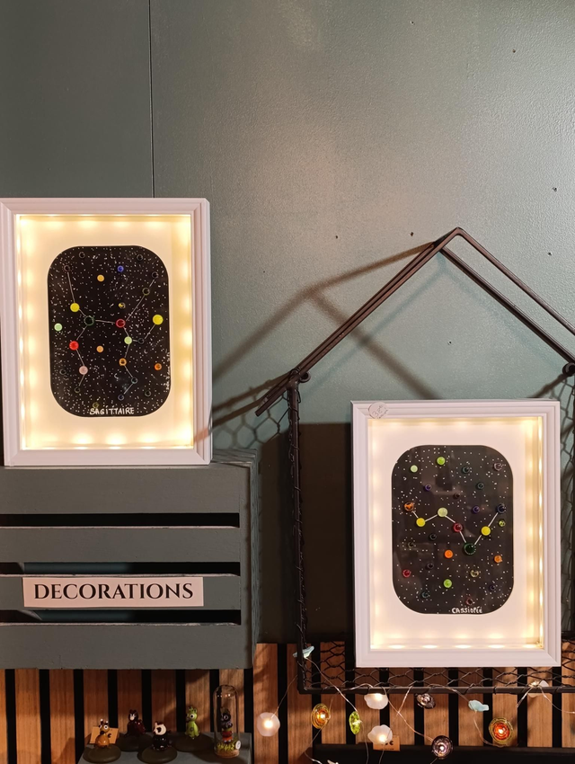 Cadre constellation lumineux 15×20 – Verre filé au chalumeau – Signes astrologiques
